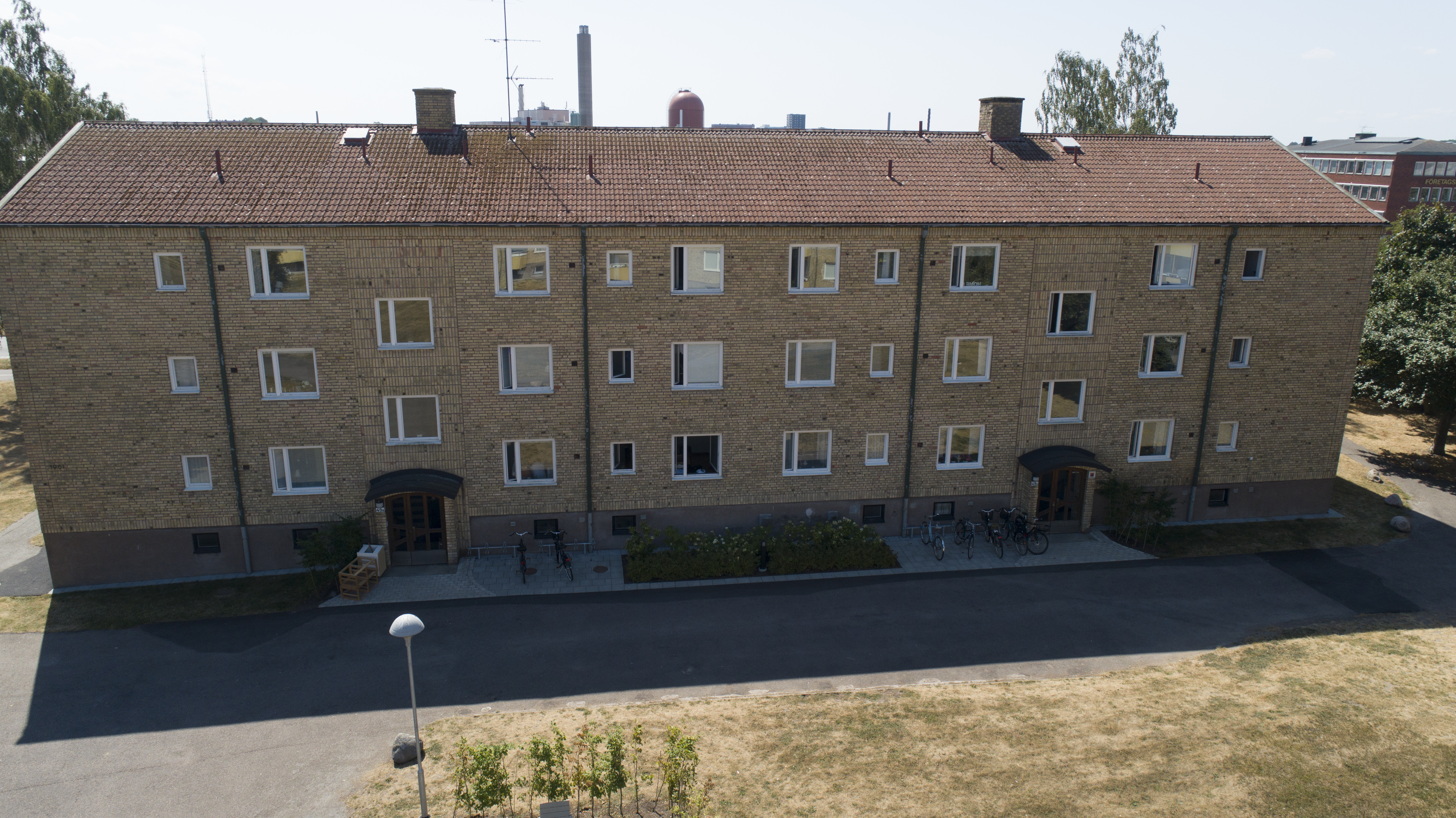 Denna fastighet består av flera hus och tillsammans finns det 132 lägenheter fördelade på 2-4 ROK. I anslutning till fastigheten finns det en stor innergård som uppmuntrar till lek och umgänge för hyresgästerna. I närheten finns köpcentret Giraffen, skolor och sport/simhall. Citykärnan nås enkelt via cykel eller buss. Lägenhetsförråd och gemensam tvättstuga finns i källarplan. Miljöhus med möjlighet till viss källsortering finns i anslutning till fastigheten. Fiber och tv levereras via ViaEuropa, för mer info se www.viaeuropa.se. Till fastigheten finns det ett visst antal garageplatser och parkeringsplatser; till dessa är det separat kö.
